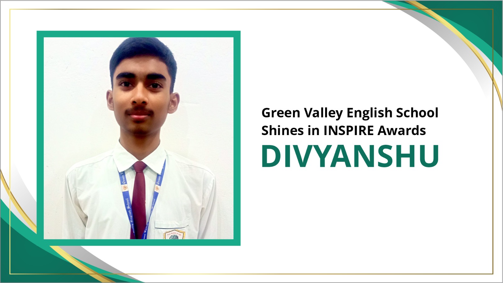We are proud to announce that Divyanshu Saroj, a Class 8 student of Green Valley English School, Varanasi, has been selected for the prestigious INSPIRE Awards MANAK, organized by the Department of Science & Technology, Government of India. As a reward for his innovative project, he will receive a cash prize of ₹10,000 along with a certificate of achievement.
